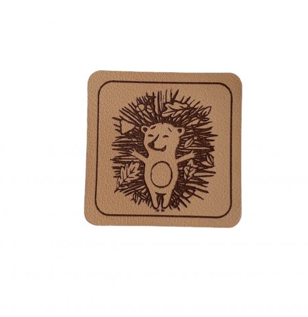 Kunstleder Patch mit Igel mit Blättern